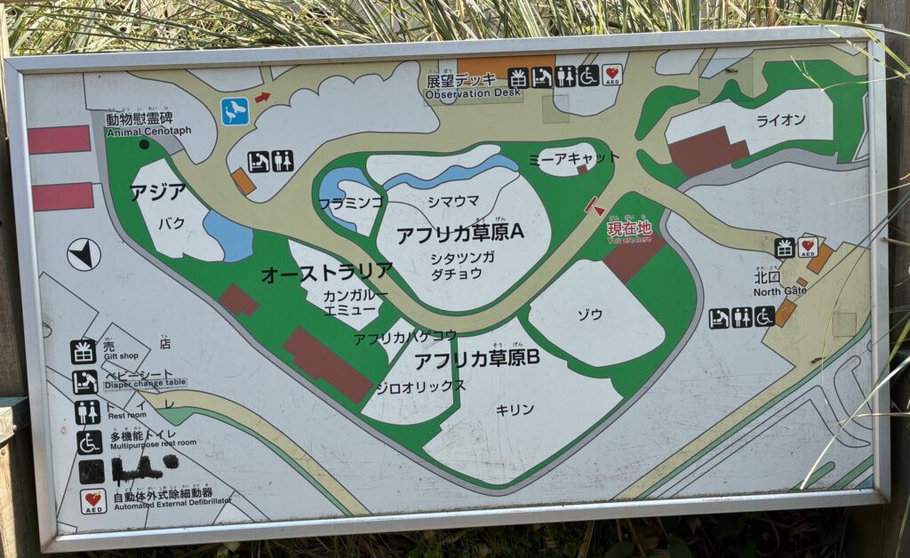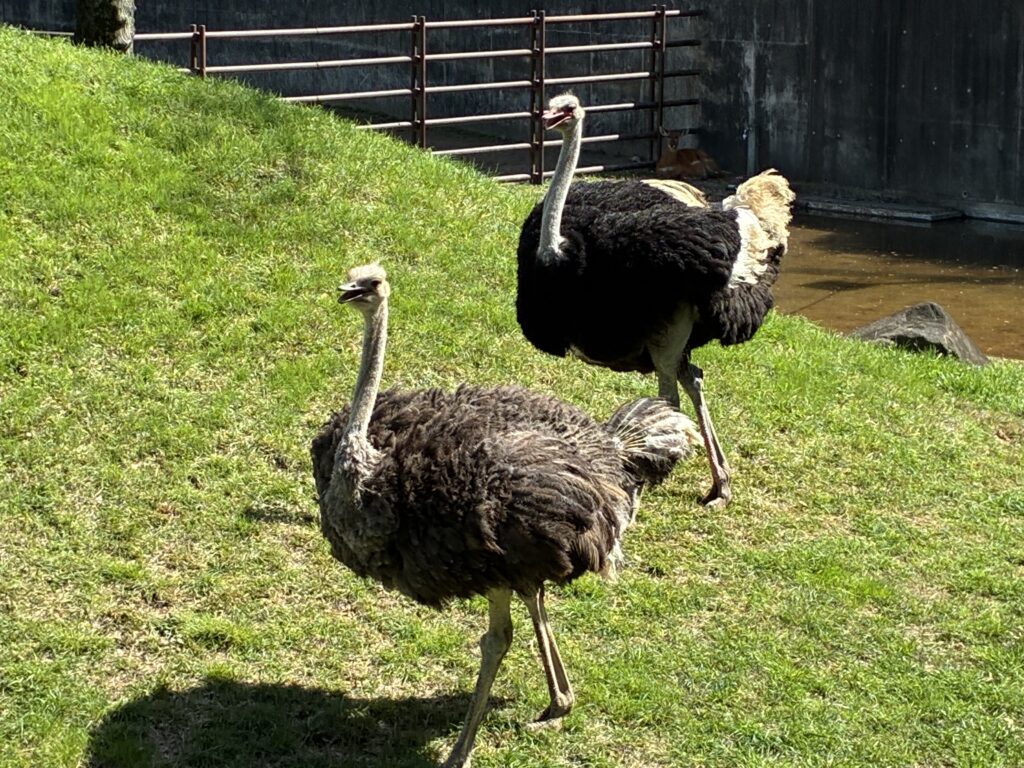 階段を上がっていくと、目の前に平原ゾーンがありました。シカやダチョウが芝生の上を走っていて可愛かったです。まず平原ゾーンから回ることにしました。平原ゾーンから時計回りに見ていきます。