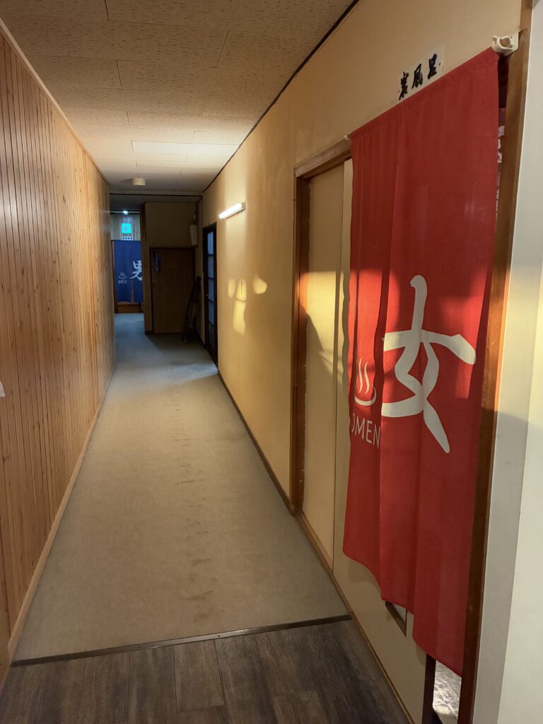 中に入ると、ここはリノベーションしていない感じで以前の旅館の温泉をそのまま使っているようでした。なのでちょっと古びた感じです。
