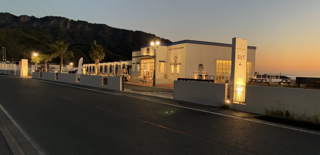 金谷ステーションの前には、BAYSIDE KANAYAという宿泊施設もあります。一般の人でも入れるカフェレストランもあるみたいですよ~