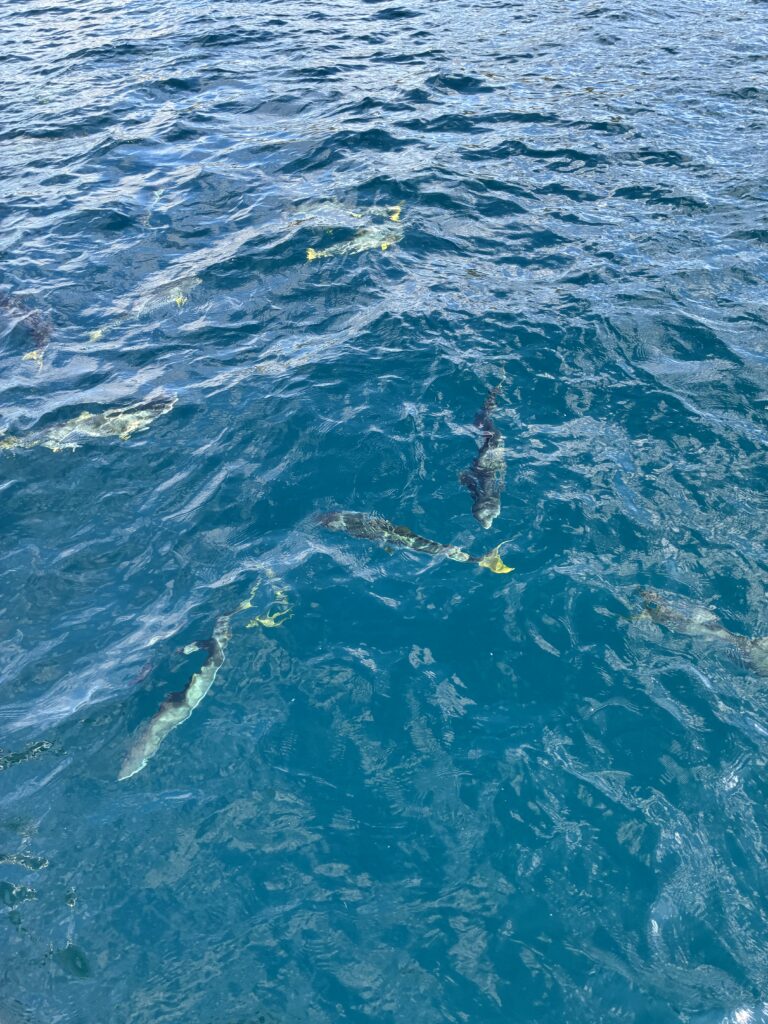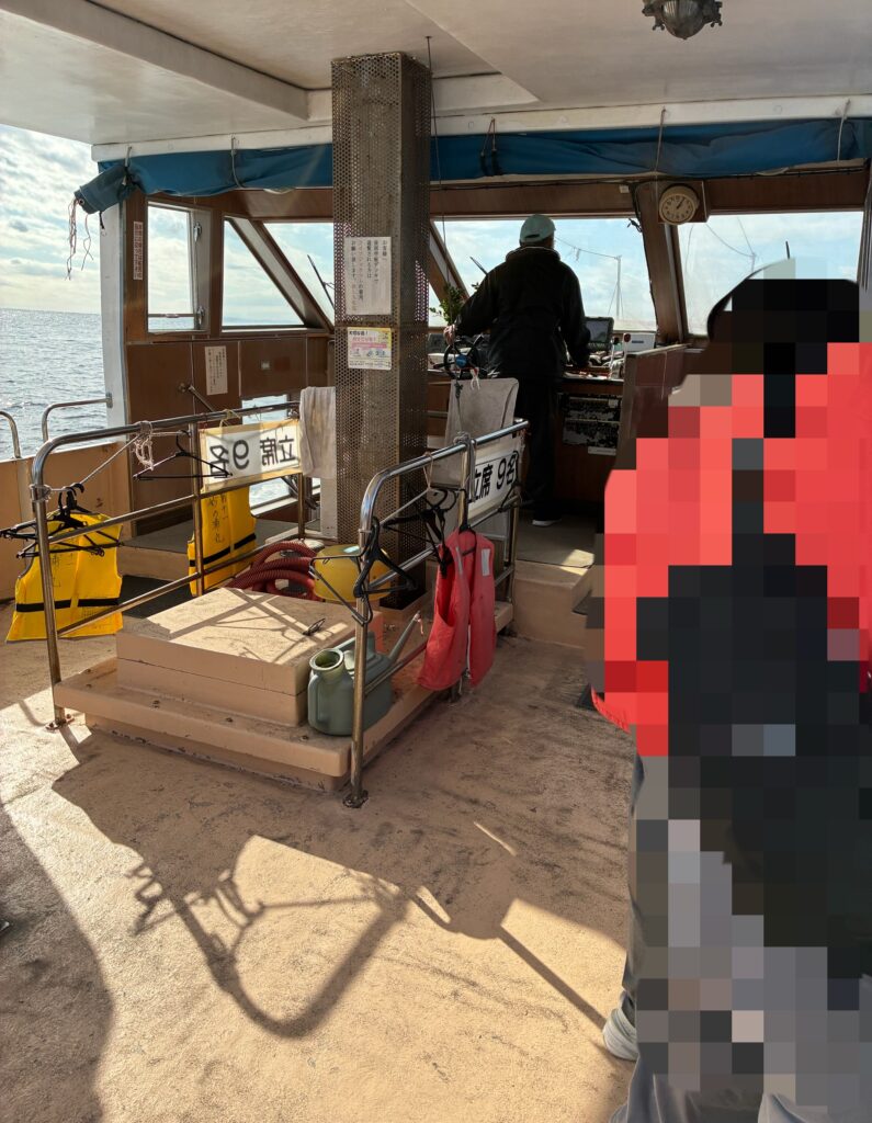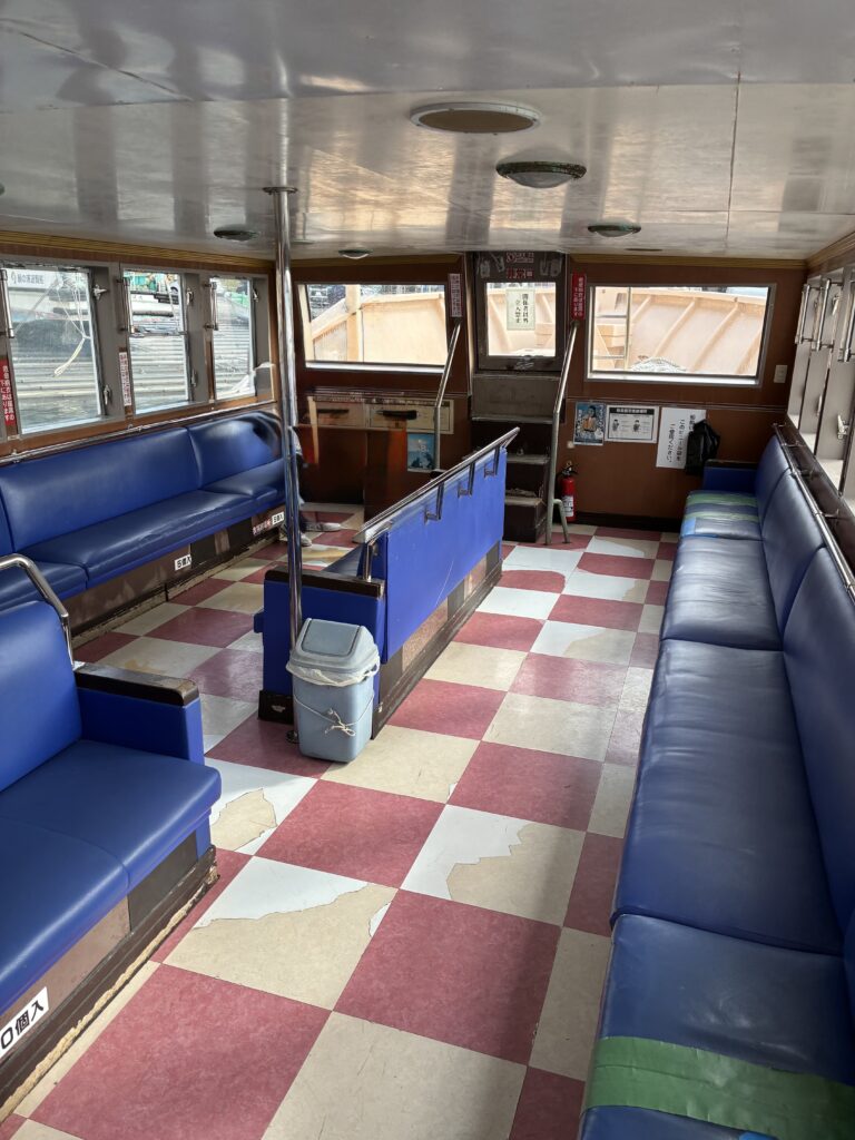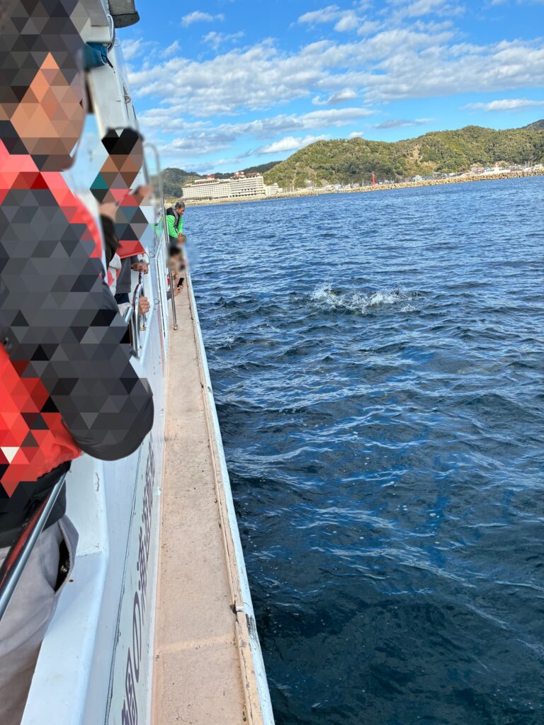 船の先端からエサを撒いていたので魚を近くでちゃんと見たい人は、後部甲板デッキではなく船内入って右側にの席に座ったほうがいいですね。参考にして下さい。