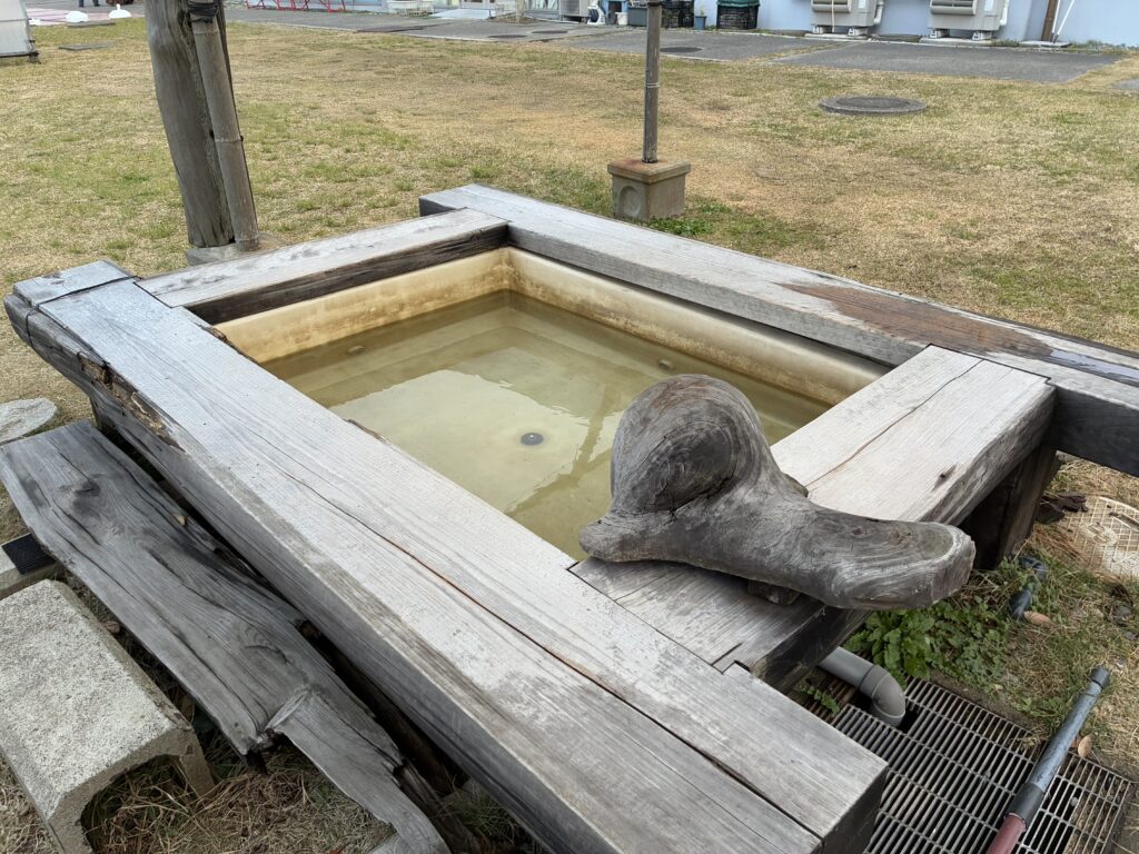 1階から外に出ると喫煙スペースや足湯もありました。