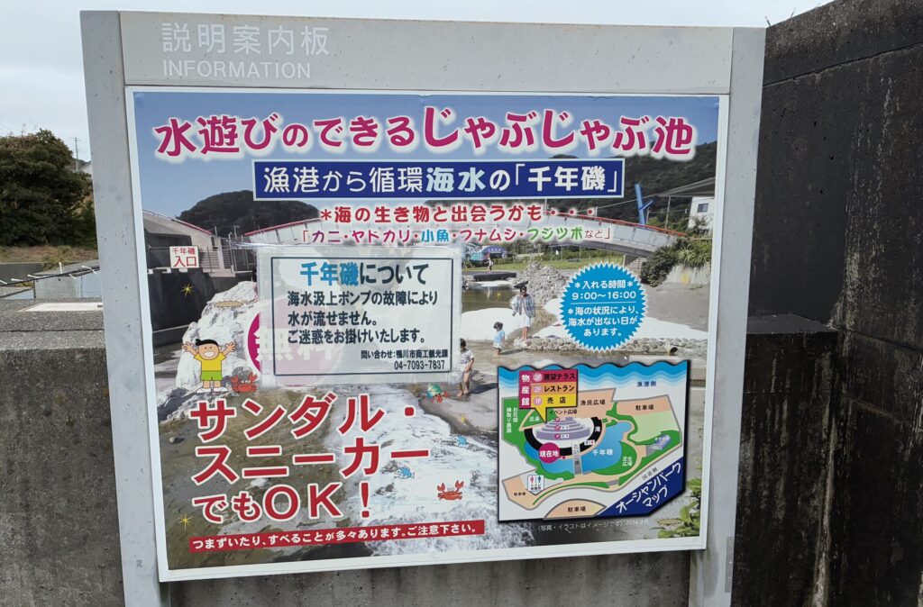 個人的には千年磯のポンプが直らないかなーと思っています。夏だったら子どもにはいい遊び場になるのに!!千年磯の再開期待しています!!