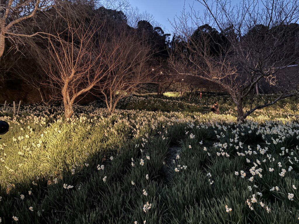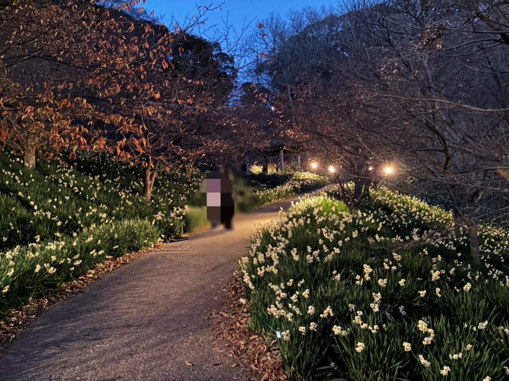 私たちは、をくづれ水仙郷のライトアップをみに行ってきました。