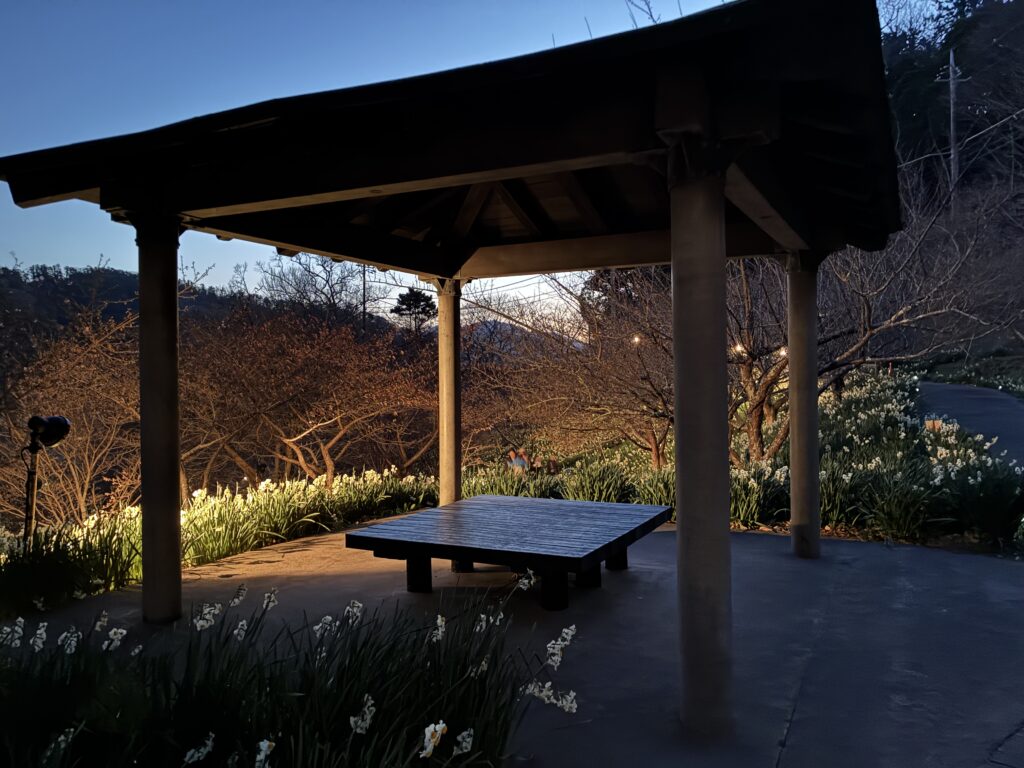 ライトアップしているのは、このをくづれ水仙郷の場所だけです。