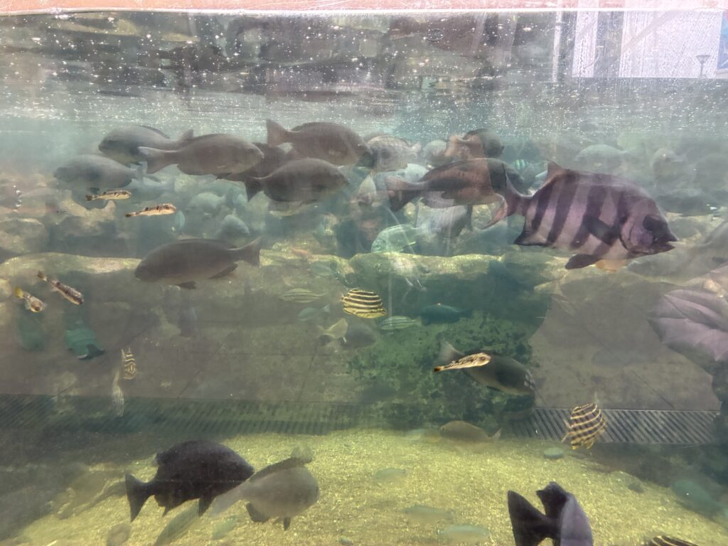 中に入ると大きな水槽が!魚がたくさん泳いでましたよ~