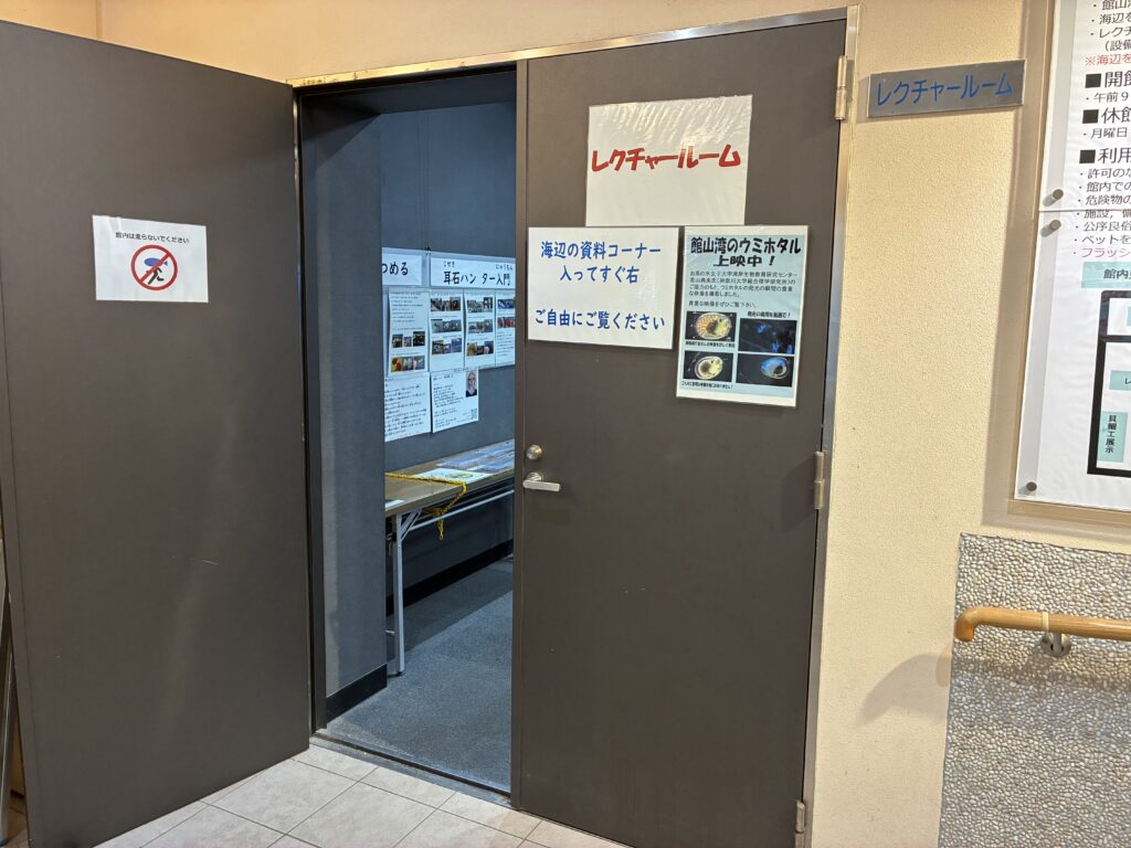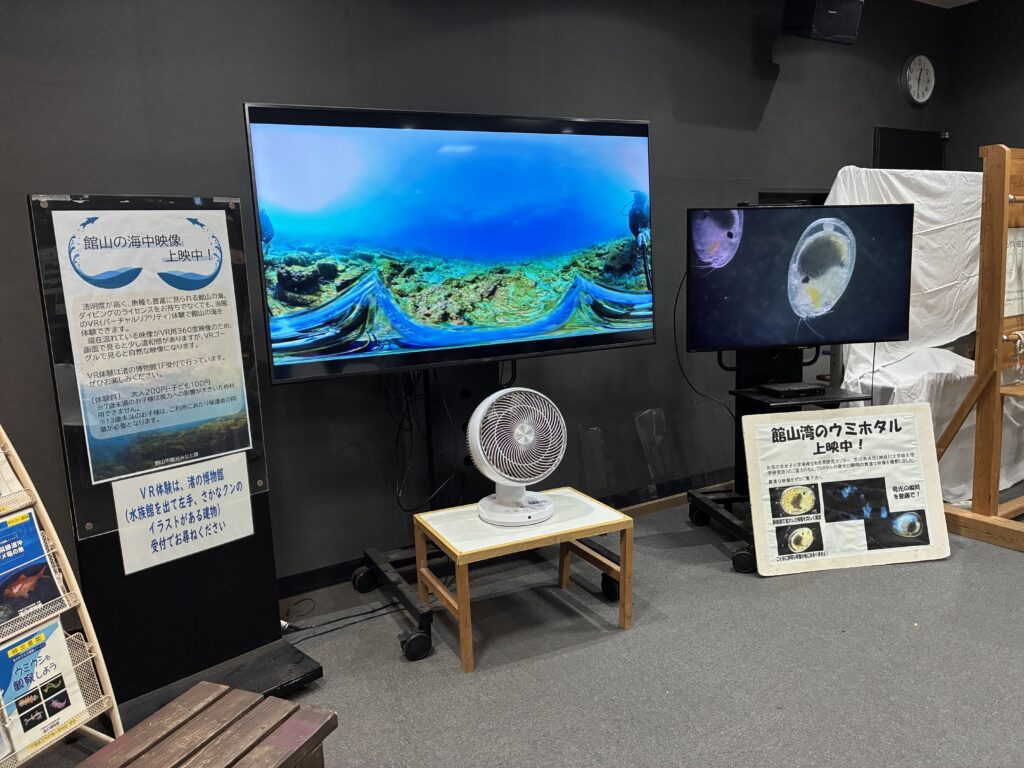 奥に進むと…レクチャールームがあって中には、水中カメラの展示や館山湾のウミホタルの映像や館山湾の海中映像が見れるようになっていましたよ。